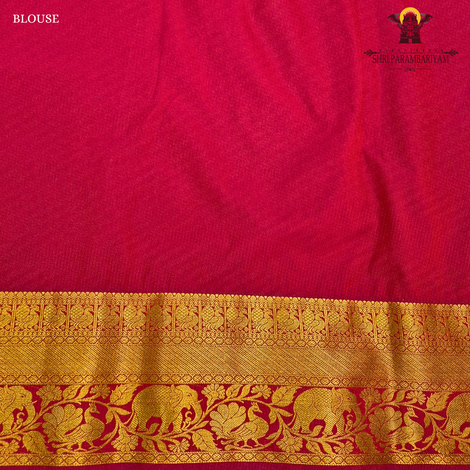The semi-silk fabric offers a soft texture with a natural sheen, ensuring a graceful drape and comfortable wear. This saree is an excellent choice for weddings, festive occasions, temple ceremonies, and traditional celebrations, making it perfect for those who prefer bold colors with classic South Indian craftsmanship.